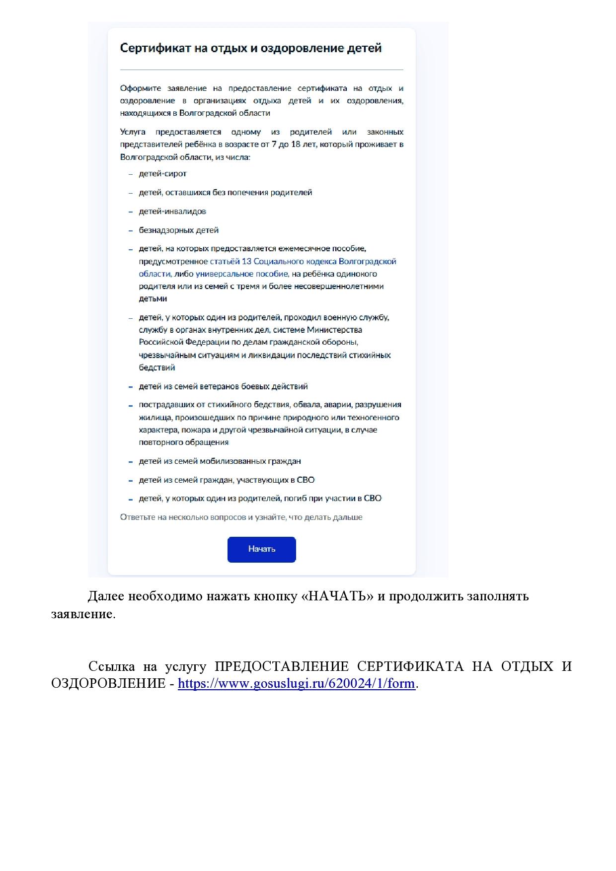 Ссылка на услугу ПРЕДОСТАВЛЕНИЕ СЕРТИФИКАТА НА ОТДЫХ И ОЗДОРОВЛЕНИЕ - https://www.gosuslugi.ru/620024/1/form.